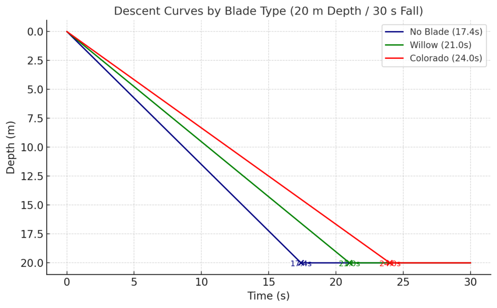 • No Blade:ブレード抵抗なし → 最も早く沈む